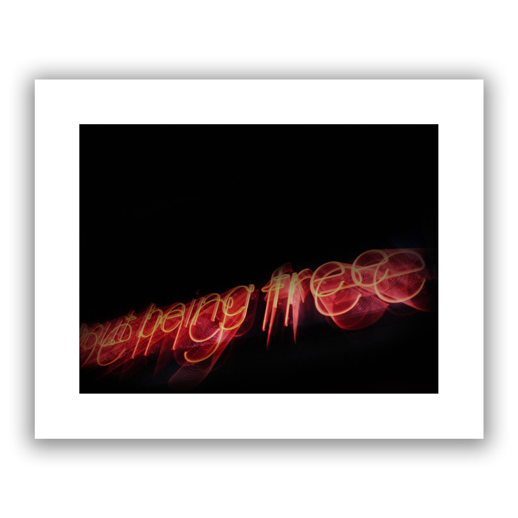 Experience the vibrant energy of Vienna nightlife with "Being Free." This stunning neon sign, printed on Hahnemühle Torchon paper adds a pop of red and black to any space.