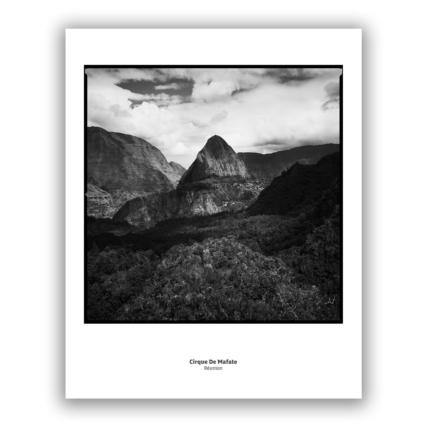 Draw attention with this beautiful landscape fineart print in your home. The breathtaking landscapes of Cirque de Mafate in Rèunion leaves one in awe. Mindblowing views in every direction. Enjoy this Fineart Print in Negative style on our distinguished Hahnemühle Torchon paper. The rough structure of this fineart paper gives your print a unique look.