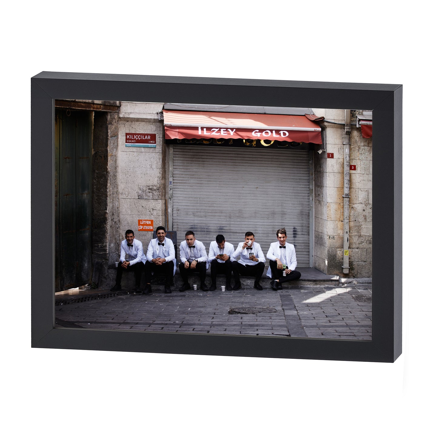 Experience the vibrant energy of Istanbul with our fine art print featuring waiters enjoying a coffee break. Printed on high quality Hahnemühle Torchon Paper, this piece captures the essence of the city. Add a touch of culture and elegance to any space.